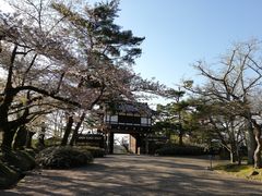 ホテルの朝食前に訪れたので、朝の散歩をしている人たちが数人おりました。城跡を桜を見ながら散歩できるなんて羨ましい限りです。お濠周辺の桜は殆ど葉桜となっていましたが御隅櫓の辺りにまだ少しソメイヨシノが花を見せていました。佐竹氏の居城であったということで、園内には佐竹資料館もありましたが、開館時間外で残念でした。