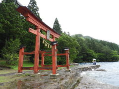 乳頭温泉郷から田沢湖周遊道路を走り最初に立ち寄りしたところです。道路から大きな鳥居、その足元に田沢湖が広がります。青く澄んだ空の映る田沢湖を描いてやってきましたが本日雨、この鳥居の足元、湖から見て右側の波打ち際雨でも凄く綺麗です。神社はこじんまりとして祀られています。隣には広い駐車場、茶屋、トイレとありここで一息ついてみてはいかがでしょうか