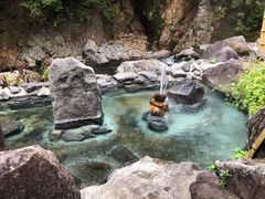 大平温泉は、米沢駅から送迎車で約1時間、細く未舗装のかなりの山道を走った先にありますが、車で行けるのは途中までで、そこから徒歩で20分ほど山道を降りて行きます。(帰りは登りなので30分はかかります。)途中吊り橋を渡った先にようやく温泉旅館が見えます。館内は綺麗にされていて、客室は角部屋だったので、窓から川と滝を見ることができました。食事は専用の食事処でいただきます。温泉大浴場は、館内に男女別内湯があるほか、露天風呂はすべて建物の外にあります。男女別の露天風呂と、帳場で予約して入る貸切露天風呂が2カ所あります。露天風呂のすぐ前には川が流れていて、まさに絶景、ワイルドなものでした。どれをとっても秘湯中の秘湯という感じなので、秘湯ファンの方はぜひ1度訪れる価値があると思います。