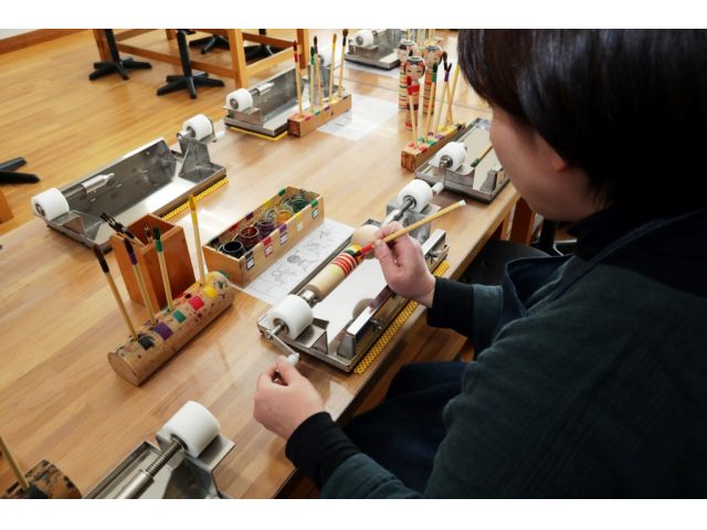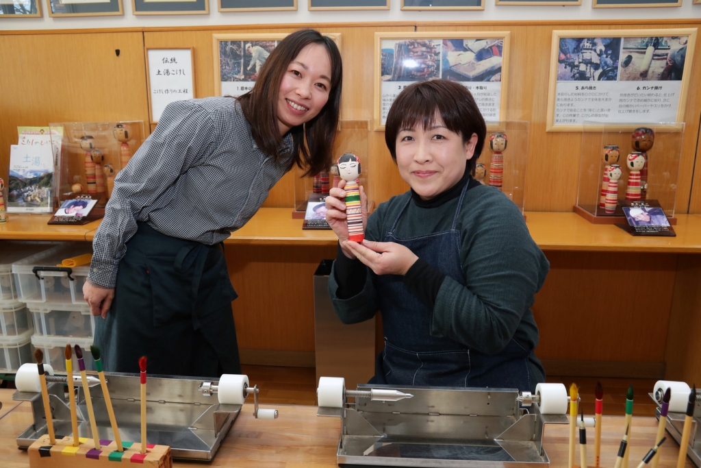 ・手回しろくろと5色の絵筆を使って、土湯伝統のこけし描写が体験できます♪