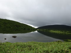 岩場を過ぎた辺りから遠くに鎌沼が見えてきますが、その色鮮やかさにやられました。