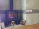休憩スペース。目の前に薪ストーブがあります。