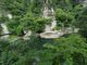 広田タクシー「猿游号」で再び余野上温泉駅に戻った。次に向かう塔のへつり行きの列車まで30分程の丁度良い間合いである。湯野上温泉駅から1駅である。ホームの幅が非常に狭く、緑に囲まれた小さな木造の待合室が建つ駅は、ホームに上る斜路の改修工事中で、少々残念な景観であった。会津田島に向かう列車まで50分程の合間での観光である。灌木の林の中の道を400m程下ると広いロータリーに出た。ロータリーの周囲には軽食店や土産物店が並んでいる。川沿いの階段を下ると塔のへつりの淵と吊橋が見えてきた。緑色の緩く流れる河面と白色の崖の壁面とが創る景観が綺麗である。橋を渡った先には崖の窪みの中に菩薩を祀った祠があって、落ち着いた雰囲気の場所であった。沢山の観光客でかなり混んでいて、崖の窪みに造られた狭い遊歩道を歩く際や写真撮影の際も、相手と道や場所を譲り合わなければならない。譲り合い精神を試される観光地である。混雑していたこともあり、観光時間は実質15分程であった。