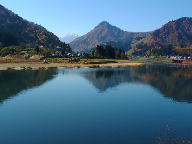 霧の只見川、沼沢湖はとても有名ですが晴れた日の集落が綺麗に映った只見川もとても綺麗です。