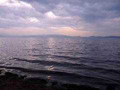 駐車場から湖畔まで歩きましたが、夕暮れの湖畔に人影はありません。