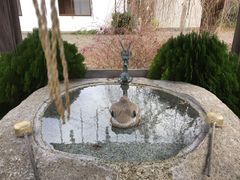 境内にはカエルの像がありました。拝殿の前にはカエルの背中をこすって音を出す木製の像がありました。もちろん御利益を願ってこすってきました。