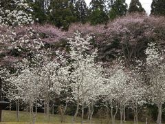 北茨城の温泉に向かっていると、桜が沢山咲いている公園がありました。月曜休館ということで駐車場にはチェーンがかけられていましたが、駐車場までの道路に車を停め、公園に行くと、真っ白なコブシの花が桜に負けじと咲いていました。茨城観光百選第二位の花貫ダムがすぐそばです。