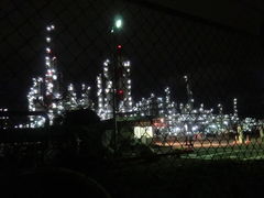 食事の後は鹿島港近くの工場群の夜景を見に行きました。建物の明かりがきれいで迫力があって、幻想的でした。