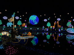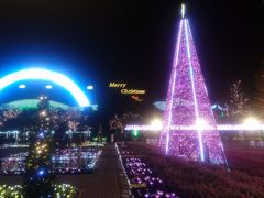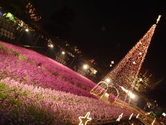 クリスマス時期のイルミネーション。巨大ツリーと巨大リース。