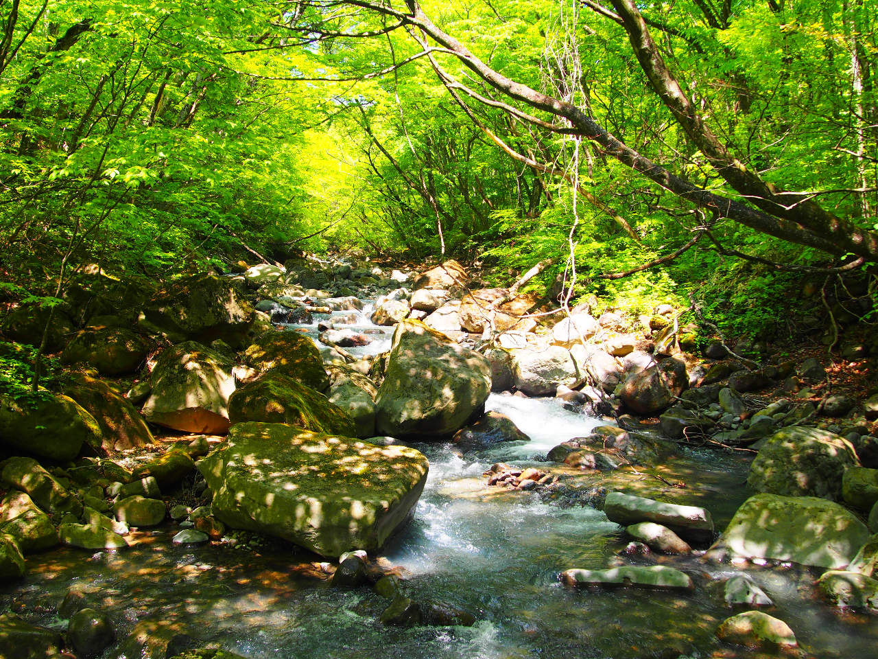 【那須】のんびり余笹新道コース(2.5時間) 〜原生的な自然を感じる、大人の休息タイム〜 〈巨木や巨岩に抱かれた静かな谷あいの空間で、ゆったりと森時間を過ごせるリフレッシュコース〉