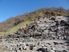 ゴツゴツとした岩肌。木道が整備されていて、とても歩きやすいです。ところどころから、白煙が吹き出し、黄色硫黄が点在し、独特の臭いが漂います。