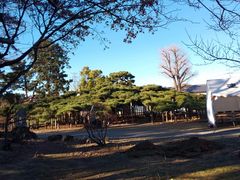 江戸時代の絵画にも描かれた古樹の松です。広い駐車場も完備されていますが、静かな住宅街にあり、少しわかりにくい場所に位置しています。神社の前にある方が「笠松」です。