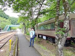 ホームを囲むように咲き乱れる桜で有名な駅である。駅前のロータリーや駐車場も非常に広い。沢入駅では見られなかったが、神戸駅には結構沢山の観光客が訪れていた。シックな黒塗りの古い木造の駅舎内では観光客向けの売店もあり、売店の老人に対面ホームの裏にある旧東武鉄道特急車両を用いた“列車のレストラン 清流”での食事を勧められた。緑色に塗装された跨線橋がある駅構内の景観は、沢入駅と似た雰囲気である。この駅にも線路上を横切って渡るルートがある。少し遅い昼食を摂ることにした。レストランに入ると目の前が厨房で、両脇に食事処に改装した特急車両の入口があるが、片方は団体用か、予約車両の表示があった。厨房の方にお勧めを尋ねると、“マイタケ定食”を教えてくれた。テレビの番組でも紹介されていたことを想い出した。食事処では4組程が食事を摂っていた。“マイタケ定食”は、大きなマイタケ4個と山菜1個の天ぷら、マイタケ御飯、山菜蕎麦がセットになった、かなりボリュームのある定食で、新鮮で非常に美味しかった。食事中に上り列車が入線した。結構長く停車していて、食後に写真を撮っていると下り列車も入線してきた。下り列車からは結構沢山の観光客が降りてきた。人気の駅であることが良く解る。沢入駅でも上下線の列車の離合が見られたので、わたらせ渓谷鐵道は列車本数が多く、その利便性もあって、観光客が多いのかもしれない。