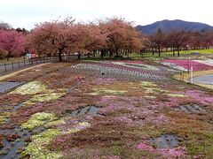 朝の芝桜アートと桜、顔を出す赤城山最高です。詳細情報をみる