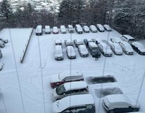 本日(12月8日)、今シーズン初めて路面に雪がうっすらとですが積もりました。