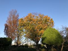 道路を挟んで西と東に分かれて色々な草木を楽しみながらお散歩できます。池の周りは紅葉のグラデーションがきれいです。