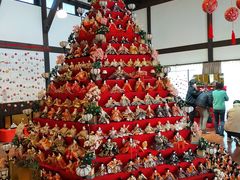 大きな古民家を活かして飾られた雛人形の数々。エントランスから館内や別棟の各所に、美しい陳列が施されていました。大きなピラミッド型や沢山の五人囃子オーケストラ、吊るし雛など見応えも十分でした。建物奥にあるうどん店も人気で、行列が出来ていました。右奥側のバラ園も見事なので、次回はバラの咲く頃に訪問予定です。