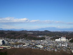 小川町の町並みや赤城山・日光連山などが一望できます。築堤を走るJR八高線や東武東上線の電車が鉄道模型のように見えて、長時間いても見飽きない眺めです。