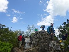 【山頂】山頂は非常に狭い為、混む前に着くことを激しく推奨。日向大谷ルートを6〜7時に出発する人たちが9時半以降に到着することを想定し、9時前に登頂したら、休日にもかかわらず人はパラパラで、山頂からのパノラマ写真を思う存分撮れた(9時半頃から人が集まり始めた為、下山)。