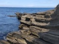 房総館山に何度か訪れていましたが、初めて訪れる機会が出来ました。館山航空自衛隊基地を回り込んだ先に、沖ノ島へ続く砂浜(沖ノ島海水浴場)に到着します。砂浜を歩き、沖ノ島の整備された歩道を進むこと15分ほどで島の先端に着くことが出来ました。途中、神社「宇賀明神」を参拝し洞窟を見たり、隆起した岩場を歩き海岸に打ち寄せるワカメを拾う体験も出来ました。静かな内房の沖合を、ゆっくり進む大型貨物船を見ていると時間の経過を忘れそうになりました。散策するうえで起伏も少なく、ゆったり回ることが出来ました。島ではトイレが使用できない状態でしたので、行かれる時には注意ください。約40分くらいの滞在でしたが、訪れてよかったと思える沖ノ島でした。