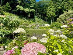 運動不足だったので茂原駅から往復10キロ歩きで行きました。色とりどりの紫陽花が咲いてて種類も豊富でとても綺麗で良かったですね、山の斜面に沿って咲いているので、見て回るには運動靴に晴れの日が最適です。来園者が多いとあの人数で対応するの大変ですね。お土産に絵葉書(毎年種類増やす感じで)とかあると嬉しいです。来年も見に行く予定です。