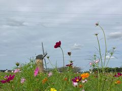 バスツアーで行きました。コスモスは咲き始めでピークまでは後一週間くらいかな?という感じでした。風車も風で回っていました。