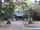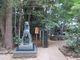 諏訪神社 狛犬と奥の義家の献馬の像