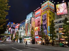 あまりほかの街を知っているわけではないのですが(笑)、夜の秋葉原電気街は、こうこうとした大きな電飾看板が立ち並び、メイド姿の女性が並んでいて手を振ってくれるなど賑やかで独特の活気にあふれていました。平日の夜でしたので、仕事終わりの方も多くいて、混んではいるけれど整然としてもいました。