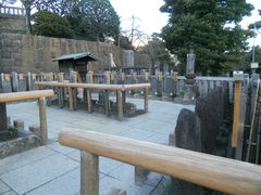 1701年(元禄14年)3月14日に切腹した浅野長矩の遺骸は菩提寺の泉岳寺に葬られた。墓は高さ2m余り、笠石のない1本石の墓石が立つのみで、大名の墓らしくない。隣に立つのが長矩の夫人である瑶泉院の墓。これには大名の奥方にふさわしく、笠石が載せられている。四十七士の墓は玉石垣に囲まれており、大石良雄、主税父子の墓を軸に10人、10人、10人、6人と四角に並び、中央に5人ずつ2列に並んでいる。