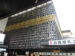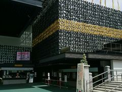 深川不動堂の新しい本堂の写真です。壁面は梵字で経文だと思いますが書かれています。年末で混んでいたので中には入りませんでした。