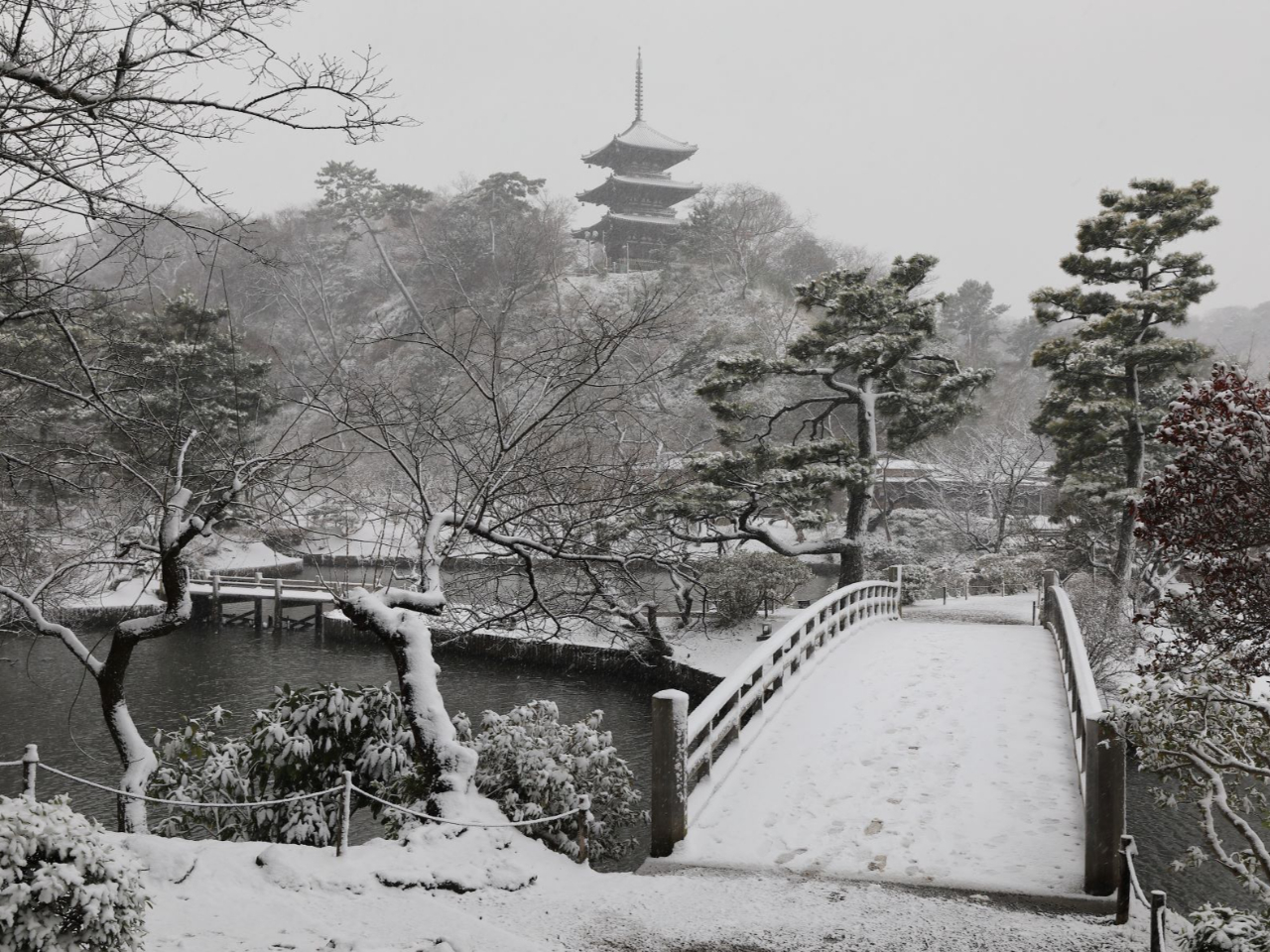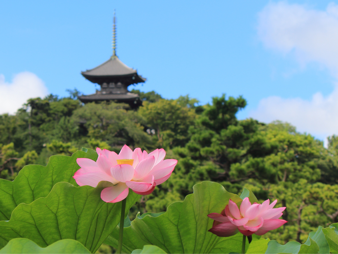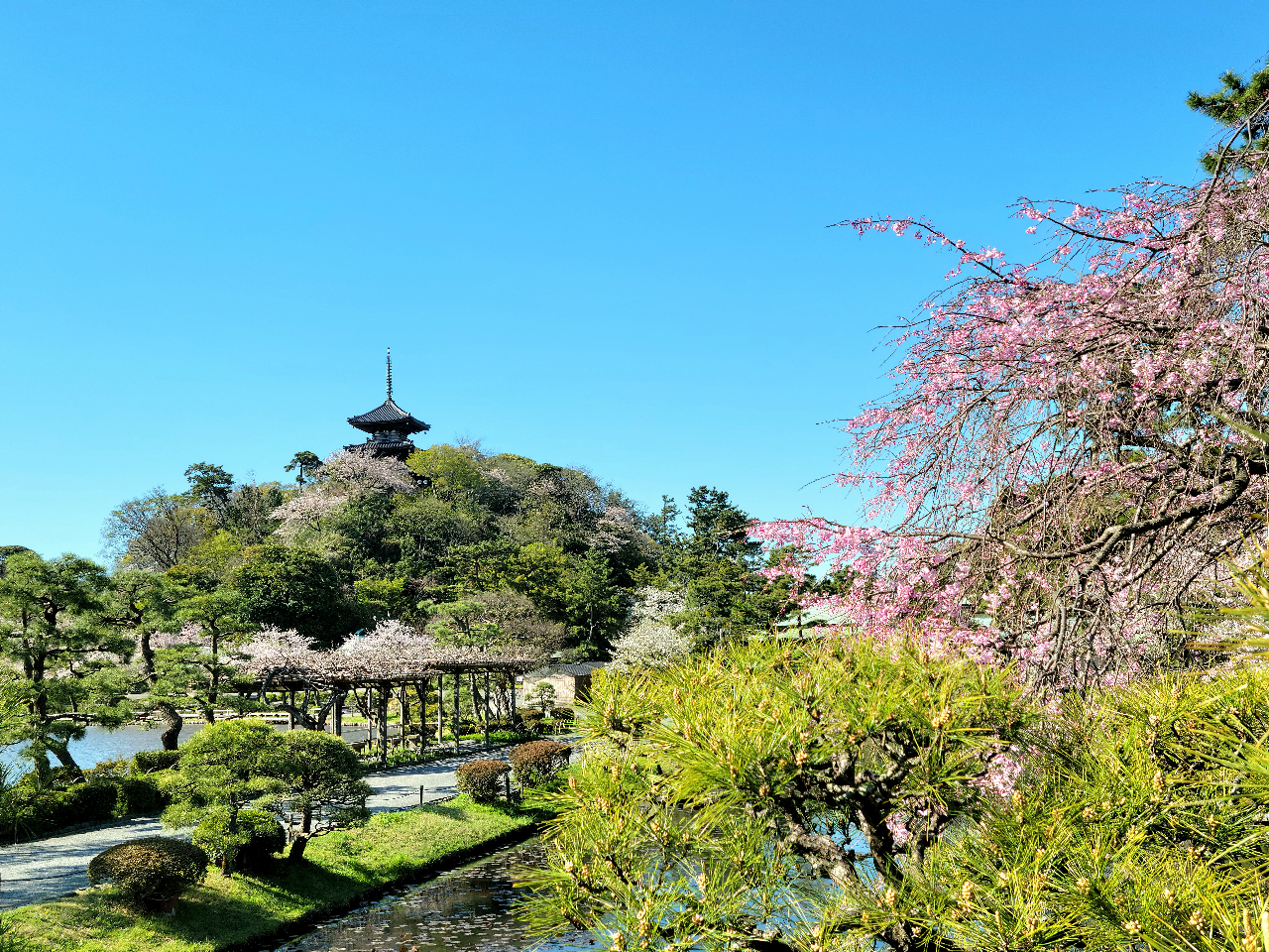 園内は自然美と歴史的建築が調和しているため、フォトジェニックなスポットが多数あります。特に、三重塔が池に映る景色は人気の撮影スポットです。