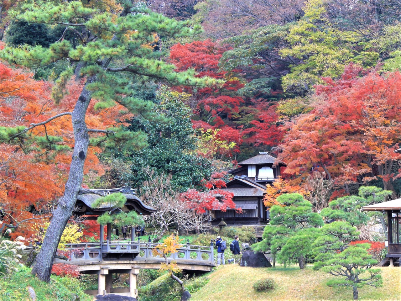 園内には京都や鎌倉から移築された歴史的建造物が点在しており、園のシンボルともなっている「旧燈明寺三重塔」や、現存する合掌造りでは最大規模の「旧矢箆原家住宅」など、重要文化財に指定されているものも多く、庭園散策と共に歴史的建築物を楽しむことができます。