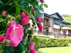 バラ園としては小さいのですが、旧前田侯爵の別邸となる洋館や、背景の山、相模湾の海などとの取り合わせがのびやかで美しく、絶好のロケーションが魅力です。