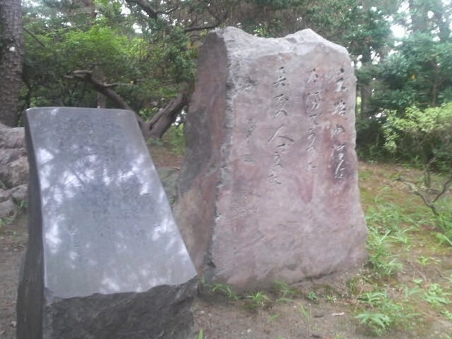茅ヶ崎図書館の隣に高砂緑地があります。 明治時代の俳優・川上音二郎の別荘地であったそうで、松林の中、近くの街の雰囲気とは一線を画す雰囲気です。 ちょうど通勤時間帯の周囲の道路の喧噪とは裏腹に、緑地内の平塚らいてうの碑は静かに佇んでおりました。