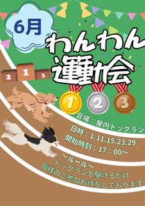 6月も先月に引き続き「駆けまわれ!わんわん運動会」を開催いたします!