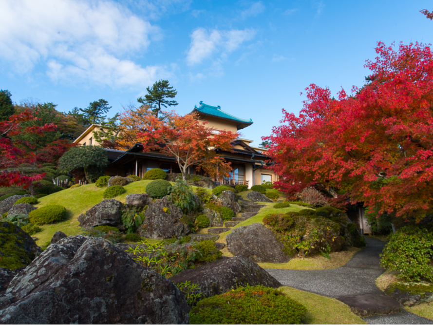 趣のある庭園「神仙郷」は、令和3年(2021年)に国の名勝に指定されました。苔とモミジからなる「苔庭」と、火山活動で生み出された巨岩から構成される「石楽園」の見事な景観に魅了されます。