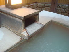 湯の花が沈でんしていて、入ると白くなりました。