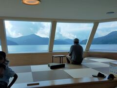 箱根に来たら一回は一階、二階、デッキ、上部など好きな場所で芦ノ湖を一望できます。特に天気のよい日はデッキだと気持ち良く風を受けながら乗船できます。景色はひたすら湖畔に緑が広がります。
