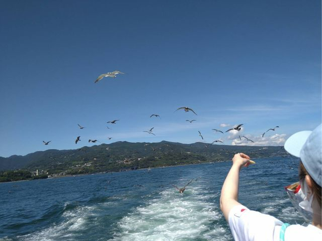 可能 船内でゆったりと座って、またはデッキに出てカモメの餌やりも可能です! |