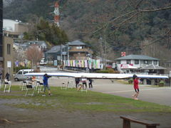 この日はパラローイング初心者のための試乗会があり来ました(スケジュールは日本ボート協会のホームページで読みました)。ボートから眺める四方の山々は緑がとてもきれいでした。また、桜もまだ少し咲いていました。