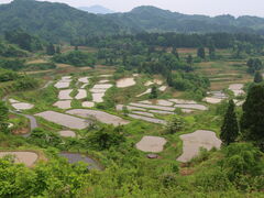 そして、眼下に見下ろした、水の張った田植え前の棚田が広がる光景は、なかなか迫力がありました。