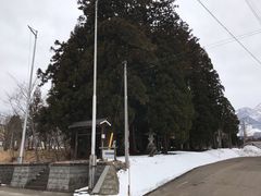関川の天神社の境内にあります。その昔は境内の杉林全体が天神社であり林の中央にある巨大な大杉がご神体だったと伝えられています。