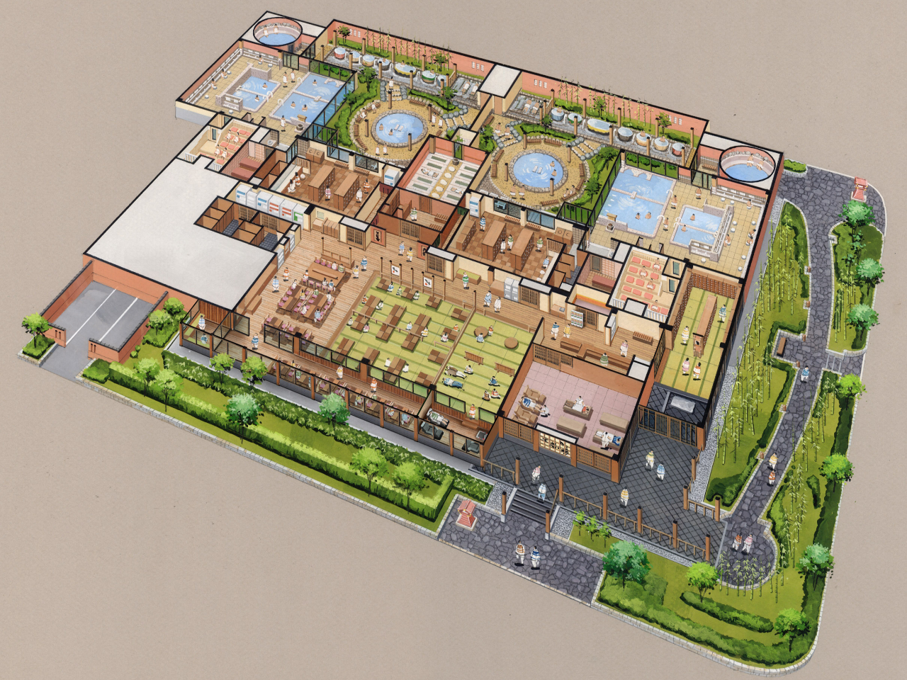 当店おすすめの七つの壺湯(美泡風呂)をはじめとした大野天風呂や白湯(41℃)やぬる湯(38℃前後)をはじめとした大浴場をお楽しみいただけます♪ご旅行やお出かけのお立ち寄りでもお越しください♪