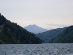 虚空蔵岩を回り込み船がUターンする間際に特徴的な双耳峰、尾瀬燧ケ岳の凛々しい姿を。