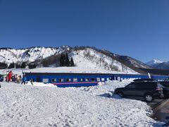 越後中里駅前のゲレンデと、 ブルートレイン 休憩所が有り、 駐車場、ゲレンデまでのアプローチがとても安全楽々なのが、 湯沢中里スノーリゾートの 特徴ですねー。