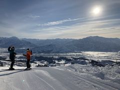 ゲレンデは思ったより 奥行きがあり 、南斜面に展開するゲレンデでは 、広く 明るく 眺望 よかったです。