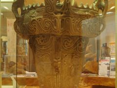 ガラスケースに入った最大の火焔型土器。道尻手(みちじって)遺跡からの出土で十日町市の笹山遺跡から出土した国宝の火焔型土器を大きさでは上回るよう。