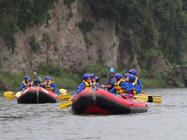 信濃川ラフティングは、スリリングあふれるアップダウンする瀬はもちろん、ラフティングボートや河原から飛び込むなど、雄大な大河を体感する川遊びなど内容も充実しています♪