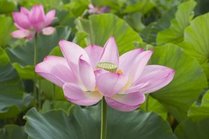 見ごろは午前中が見ごろで淡いピンク色や白い蓮が咲き誇ります。