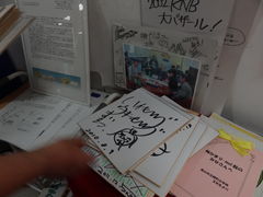 富山に来れば、土産物など選んでいると「かまぼこ」を目にするかと思いますが、ここは工場内部と製造工程を無料見学できます。お土産物もあり、テレビの撮影も多いらしく、無造作に色紙が置かれていました。。壁に張らないみたいです・・・。